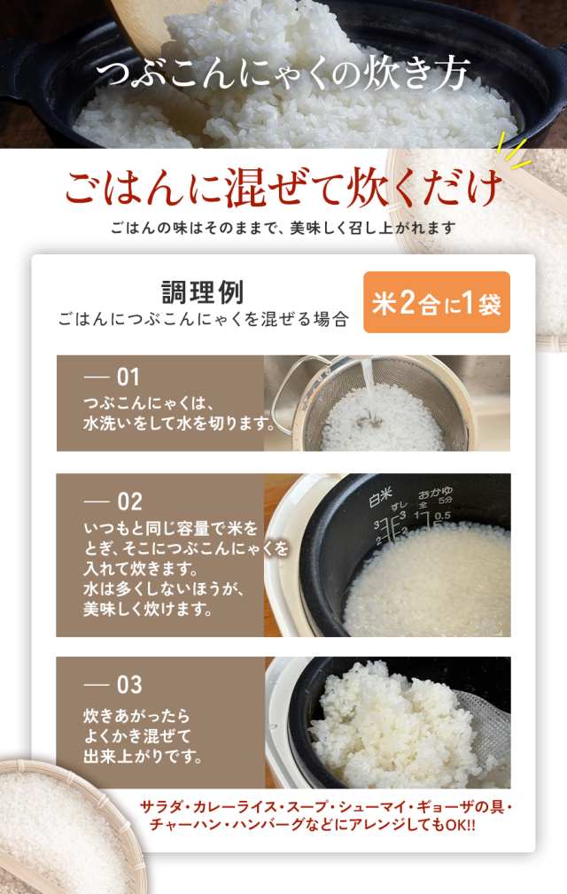 | 主食の置き換えに! こんにゃく米 |