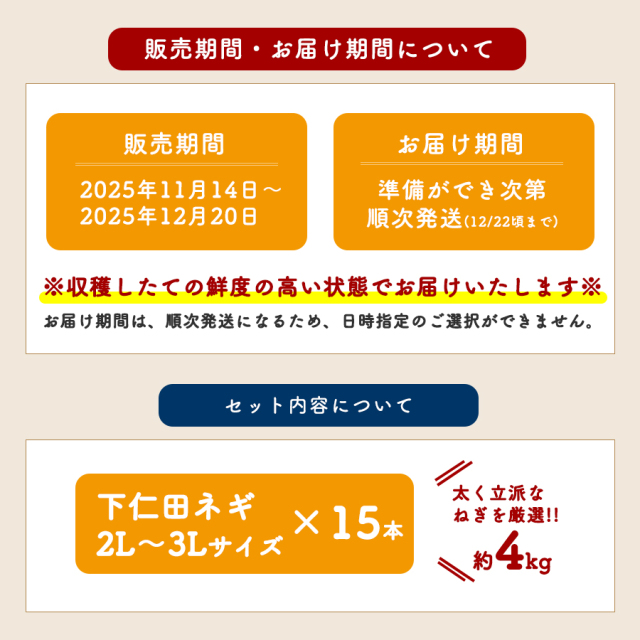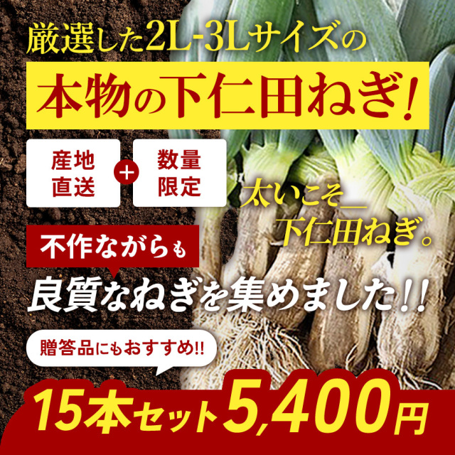 トップページ 特産品 下仁田ねぎ関連 5%オフクーポン対象商品 【予約販売|準備ができ次第順次発送】2025年度産の下仁田ネギを数量限定で販売中♪ 買えるのはこの季節だけ 太くて美味しい2L~3Lサイズ! 贈答品にもおすすめ 太いからこそ下仁田ねぎ 厳選した良質なねぎを集めました! 4kg 15本入り 群馬県産 産地直送 お鍋におすすめ 価格: ¥5,000 (税込 ¥5,400) 販売期間: 2025年11月14日12時00分~2025年12月20日23時59分 商品 下仁田葱15本セット ○ 数量: 個 商品在庫下仁田葱15本セット○ 返品についての詳細はこちら レビューはありません こちらの商品お届け目安【予約販売】準備ができ次第順次発送・12/22頃まで(日時指定不可) \大量注文承っております/イベントや業務用でのお買い求めご希望の方は在庫状況を確認いたしますので、お気軽にお問い合わせください。 ■ 下仁田ねぎ 名称 |下仁田ねぎ 産地名 |国産(群馬県) 内容量 |15本(2L~3Lサイズ) ■ 商品詳細 保存方法 |直射日光、高温の場所を避けて保存してください 製造者 |株式会社ヨコオデイリーフーズ
