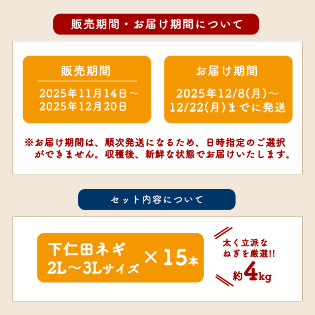 トップページ 特産品 下仁田ねぎ関連 【予約販売|12/8~12/22までに発送】2025年度産の下仁田ネギを数量限定で販売中♪ 買えるのはこの季節だけ 太くて美味しい2L~3Lサイズ! 贈答品にもおすすめ 太いからこそ下仁田ねぎ 厳選した良質なねぎを集めました! 4kg 15本入り 群馬県産 産地直送 こんにゃくパーク 価格: ¥5,000 (税込 ¥5,400) 販売期間: 2025年11月14日12時00分~2025年12月20日23時59分 商品 下仁田葱15本セット ○ 数量: 個 商品在庫下仁田葱15本セット○ 返品についての詳細はこちら レビューはありません こちらの商品お届け目安【予約販売】12/8~12/22までに発送(日時指定不可) \大量注文承っております/イベントや業務用でのお買い求めご希望の方は在庫状況を確認いたしますので、お気軽にお問い合わせください。 ■ 下仁田ねぎ 名称 |下仁田ねぎ 産地名 |国産(群馬県) 内容量 |15本(2L~3Lサイズ) ■ 商品詳細 保存方法 |直射日光、高温の場所を避けて保存してください 製造者 |株式会社ヨコオデイリーフーズ