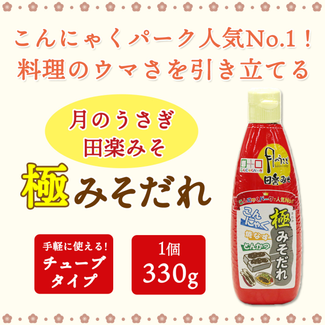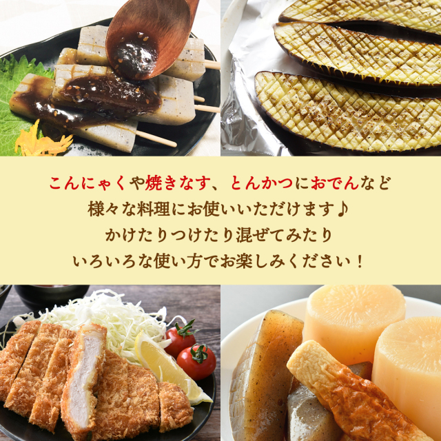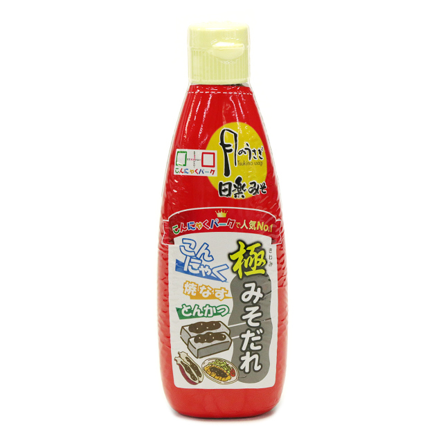 | こんにゃくパークで人気No.1の極(きわみ)みそだれ。コンニャク、焼きなす、里芋、もち、とうふ、とんかつ、おでんなどの様々な料理にかけて楽しめます。 |