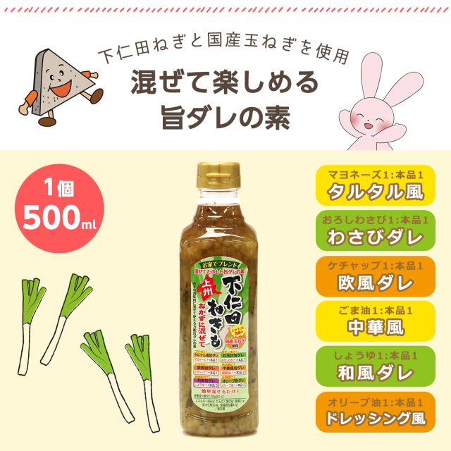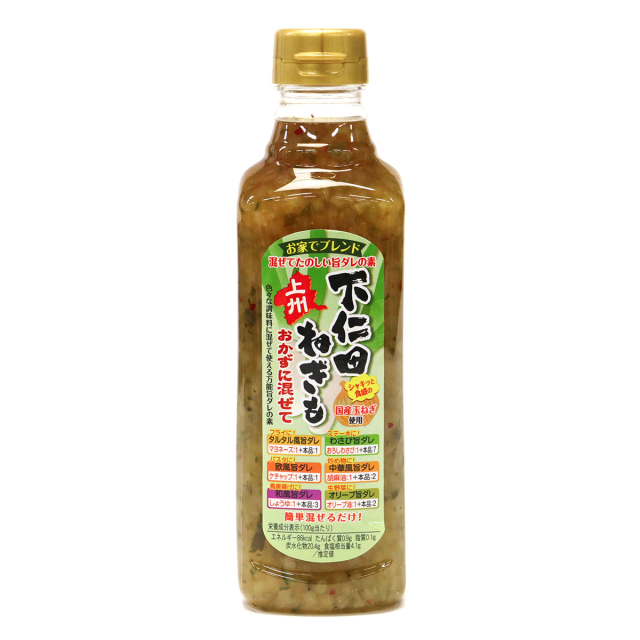 | 下仁田ねぎと国産玉ねぎを使用した混ぜて楽しい旨ダレの素。そのままお野菜にかけたり、マヨネーズと混ぜてタルタル風に、醤油と混ぜて和風になど、色々な調味料と混ぜて楽しめます。