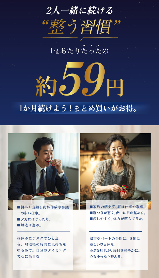 ![]() 【10日分】918円 10個入り 91円/個 ![]() 30%OFF 【約1ヶ月】1,890円 30個入り 63円/個 ![]() 30%OFF 【約4ヶ月】6,426円 120個入り 54円/個 |