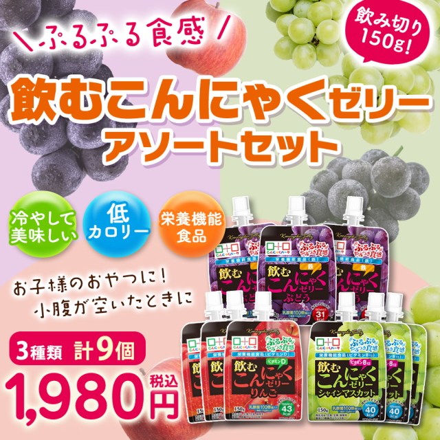 | ぷるぷる食感がやみつきになる飲むこんにゃくゼリーの詰め合わせセットです!飲みやすいサイズ感で、ぶどう・りんご・マスカットの全3フレーバーをお楽しみいただけます。腸活にぴったりの乳酸菌配合が嬉しい♪ |