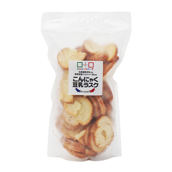 名称 |こんにゃく豆乳ラスク 原材料名 |小麦粉(国内製造)、バター、砂糖、塩、パン酵母、豆乳(大豆(北海道産))、こんにゃくペースト(こんにゃく粉(群馬県産))、モルトエキス、/酸化防止剤(V.E)、V.C、(一部に乳成分・小麦・大豆を含む) 栄養成分 |【100gあたり】エネルギー:523Kcal、たんぱく質:9.7g、脂質:26.5g、炭水化物:61.4g、食塩相当量:1.19g 内容量 |300g 賞味期限 |2026年4月13日 保存方法 |直射日光、高温の場所を避けて保存してください 製造者 |株式会社 AS フーズ山形工場 〒990-2338 山形県山形市蔵王松ヶ丘 2-1-3 |