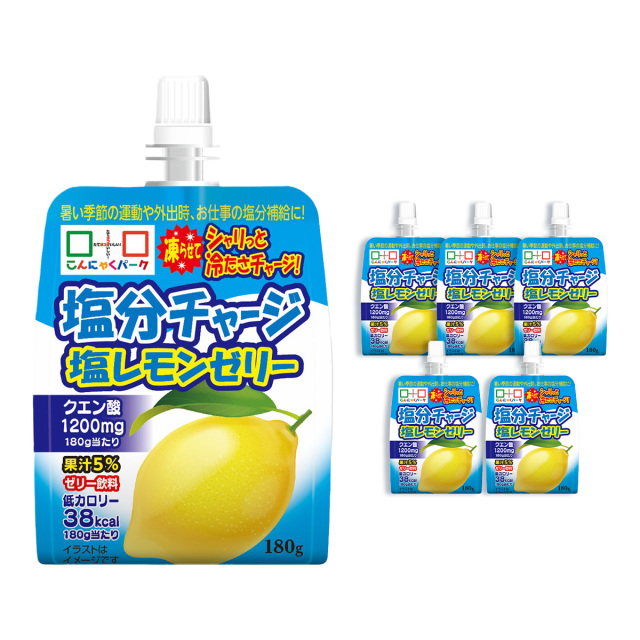 | 暑い季節の運動や外出時、屋外の現場作業や農作業時などで塩分補給に便利な飲むタイプの塩分チャージ塩レモンゼリー。塩分補給にぴったりなクエン酸、カリウム入り。常温保存ができるから、まとめ買いをしてもいつでも使用できるようにストックも可能です。凍らせれば、塩分と冷たさを同時にチャージができ、熱中症対策にぴったりです! |